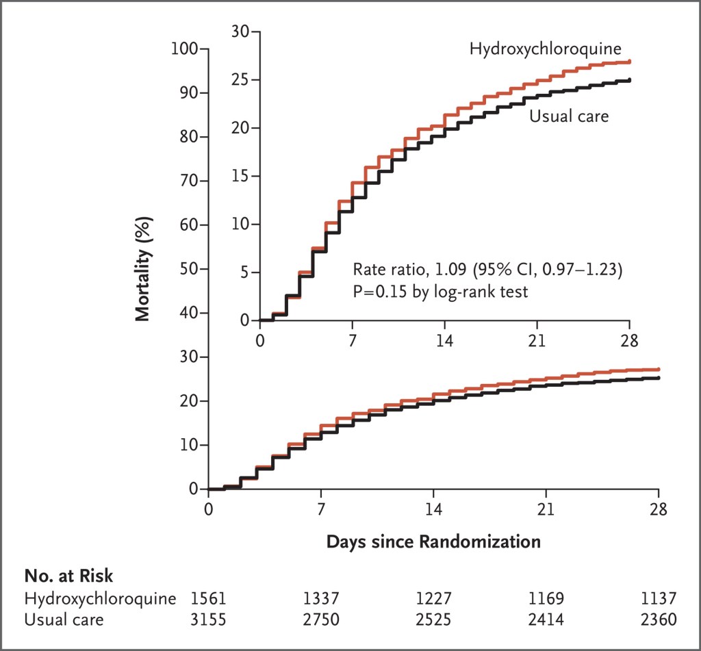 RECOVERY Collaborative Group, Effect of Hydroxychloroquine in Hospitalized Patients with COVID-19: Preliminary Results from a Multi-Centre, Randomized, Controlled Trial, https://www.medrxiv.org/content/10.1101/2020.07.15.20151852v1.full.pdf