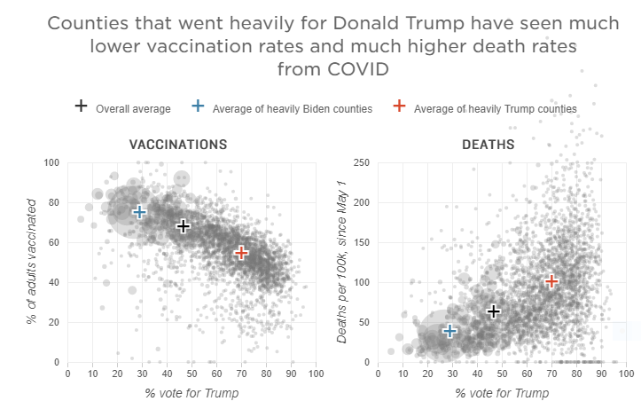 D. Wood and G. Brumfiel, Pro-Trump Counties Now Have Far Higher COVID Death Rates. Misinformation is to Blame, WGBH News, Dec. 5, 2021, https://www.wgbh.org/news/national-news/2021/12/05/pro-trump-counties-now-have-far-higher-covid-death-rates-misinformation-is-to-blame