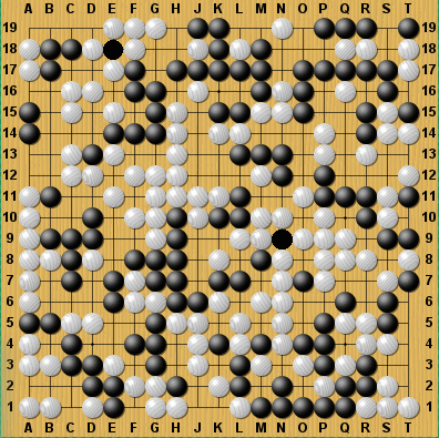 The game of Go presents an even greater challenge because the board has 19 x 19 grid points on which players place black and white stones on alternating turns (see Fig. II.2). The object of the game is to place stones to enclose completely and capture more opponent’s stones and area on the board than your opponent. The game ends when one player resigns or both players decide they see no advantage in using further stones. A typical game among experienced players may last about 150 moves. Given the simple rules of the game, there are approximately 10170 possible board configurations to consider, so the search and evaluate several moves ahead approach of Deep Blue doesn’t work well in this case. Attempts to play Go with algorithms akin to Deep Blue’s chess evaluations were unable to beat the world’s best human players.