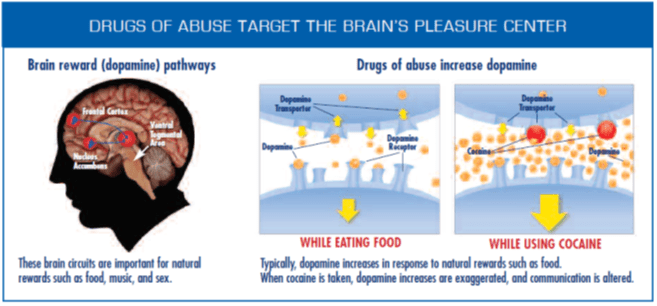 Not all stimuli that deliver pleasurable rewards have positive effects on a person’s well-being. Addiction to drugs of abuse, for example, is triggered by flooding the brain’s circuits with dopamine (see Fig. 2). Facebook and other social media platforms are designed to induce addiction among users, but without the benefit of the dopamine amplification that abusive drugs produce. As psychologist Adam Alter puts it in his book Irresistible about technology addiction: “The companies that are producing these products, the very large tech companies in particular, are producing them with the intent to hook. They’re doing their very best to ensure not that our wellbeing is preserved, but that we spend as much time on their products and on their programs and apps as possible. That’s their key goal: it’s not to make a product that people enjoy and therefore becomes profitable, but rather to make a product that people can’t stop using and therefore becomes profitable.”