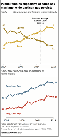 Pew Research Center, Majority of Public Favors Same-Sex Marriage, but Divisions Persist, May 14, 2019,https://www.pewresearch.org/politics/2019/05/14/majority-of-public-favors-same-sex-marriage-but-divisions-persist/