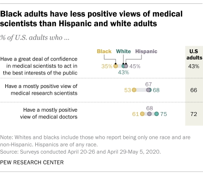 Pew Research.org: Black Americans Face Higher COVID-19 Risks, Are More Hesitant to Trust Medical Scientists, Get Vaccinated, John Gramlich and Cary Funk, June 4, 2020.
