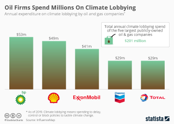 N. McCarthy, Oil and Gas Giants Spend Millions Lobbying to Block Climate Change Policies, Forbes, Mar. 25, 2019, https://www.forbes.com/sites/niallmccarthy/2019/03/25/oil-and-gas-giants-spend-millions-lobbying-to-block-climate-change-policies-infographic/?sh=56afb16d7c4f
