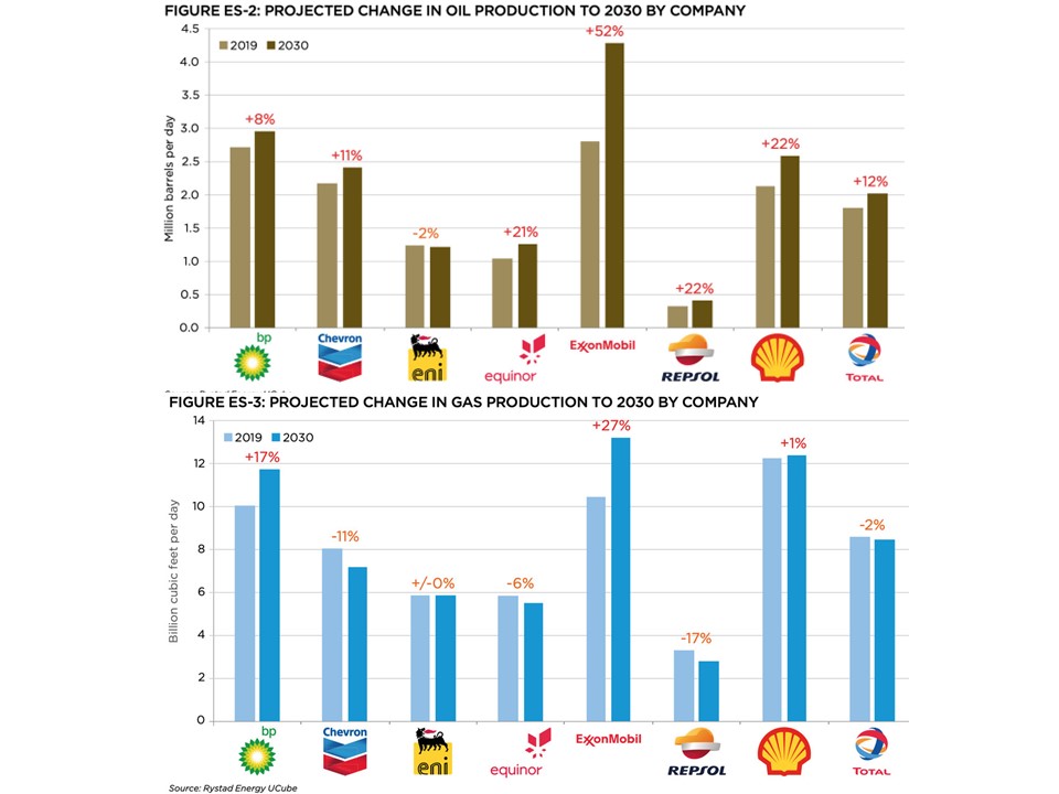 In recent years the executives of major oil and gas companies have become explicitly two-faced on the subject of climate change. Their attitudes are exemplified by the testimony of chief executives of ExxonMobil, Chevron, BP and Shell in a November 2021 Congressional hearing. All four executives now agreed about the reality of climate change driven by the burning of their products. But all four also insisted that “they had never engaged in campaigns to mislead the public on the role of fossil fuel emissions in global warming.” They touted their own companies’ investments in renewable sources of energy, failing to note that those investments only account for about 1% of their total capital expenditures. They each refused to cease direct or indirect (through intermediaries such as the American Petroleum Institute) funding to oppose legislation to reduce GHG emissions and mitigate climate change. Indeed, their climate lobbying expenditures and projected oil and gas production continue unabated, as shown in Figs. I.1 and II.4, respectively.