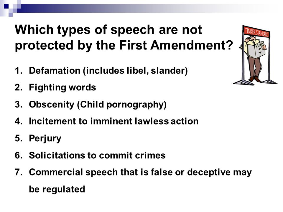 On the other hand, it is important to note that neither corporations nor individual citizens have an absolute right to free speech in all forms. Figure IV.1 lists types of speech which federal legislation and court decisions have ruled unprotected by the First Amendment to the U.S. Constitution. The extension of the First and Fourteenth Amendments to protect some forms of commercial speech was affirmed by the Supreme Court in the 1976 case Virginia State Pharmacy Board v. Virginia Citizens Consumer Council (over the dissent, it should be mentioned, of conservative Justice William Rehnquist, who argued that the First Amendment protections should be limited to political and social issues). But, with respect to item 7 in Fig. IV.1, the Virginia Pharmacy decision also noted that “the protections afforded by the First Amendment to commercial or any corporate speech do not extend to deceptive or misleading speech, holding that ‘[u]ntruthful speech, commercial or otherwise, has never been protected for its own sake.’ Even if the speech is not ‘provably false,’ but only ‘deceptive or misleading,’ the Court held it can still be prohibited without running afoul of the First Amendment.”