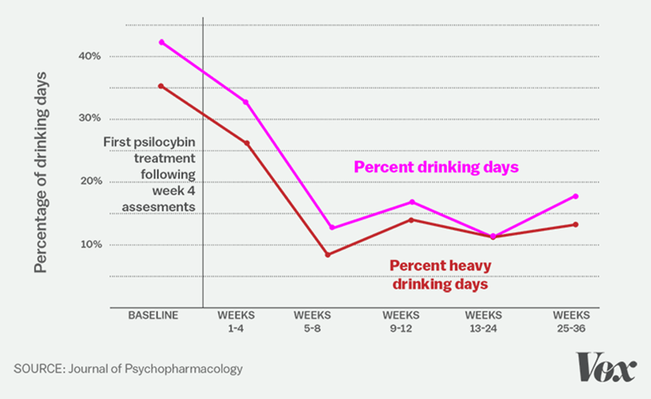 M.P. Bogenschutz, et al., Psilocybin-Assisted Treatment for Alcohol Dependence: A Proof-of-Concept Study, Journal of Psychopharmacology 29, 289 (2015), https://pubmed.ncbi.nlm.nih.gov/25586396/