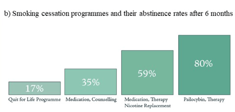 M.W. Johnson, A. Garcia-Romeu, and R.R. Griffiths, Long-term Follow-up of Psilocybin-Facilitated Smoking Cessation, American Journal of Drug and Alcohol Abuse 43, 55 (2017), https://pubmed.ncbi.nlm.nih.gov/27441452/