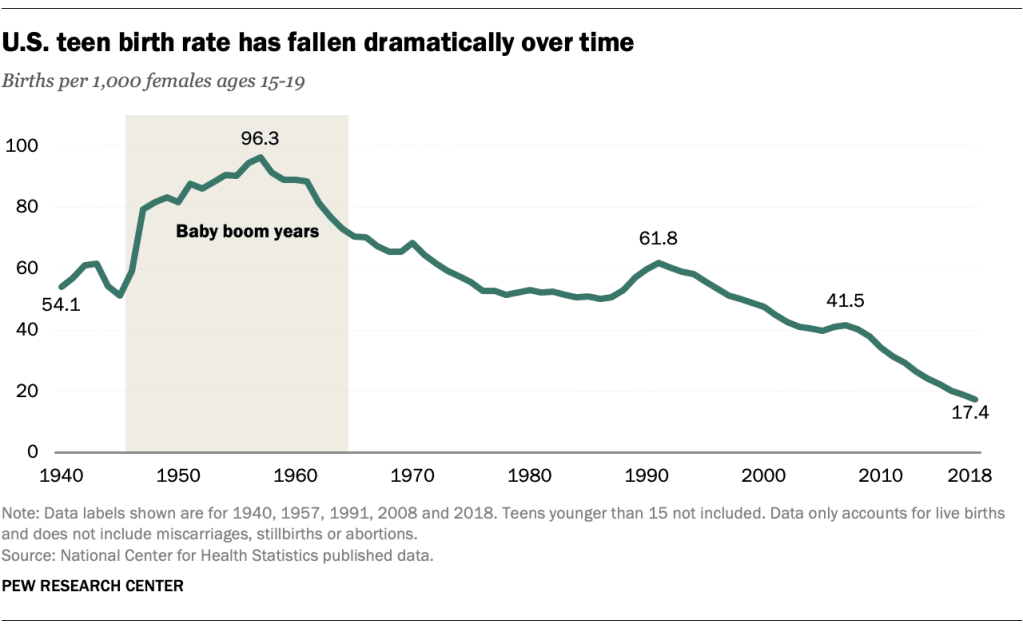 Many Pronatalist arguments stem from anti-feminist sentiment; for example, many Christians believe that there is a large number of women who would prefer to stay home and have children than to join the workforce. However, some Republican statements about reproduction seem not only anti-feminist but actually loony. In our post on declining population rates, we pointed out that the teen birth rate in the U.S. has dropped by nearly a factor of 6 from 1950 until the present, as shown in Fig. II.2. This is due to better sex education for teens, the availability of birth control and, until the 2022 Dobbs ruling of the Supreme Court, access to abortion. We feel that the decline in teen births is a positive development – delaying motherhood until one finished high school or college would improve the economic prospects for these women and their eventual children, and would enable them to start families once their economic conditions were settled. So we were surprised to see that in Fall 2024, three red-state Attorneys General (Andrew Bailey from Missouri, Kris Kobach of Kansas and Raul Labrador of Idaho) argued before Judge Matt Kacsmaryk in Texas that decreased teen births in their states constituted “a sovereign injury to the state in itself.” The injuries included “losing a seat in Congress or qualifying for less federal funding” if their state’s population was reduced by having fewer teen births. The AGs argued that the FDA had harmed their states by approving the drug mifepristone, which is one of the drugs most commonly used to induce abortion.