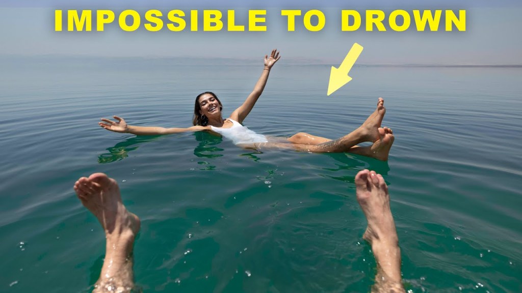 But the salinity of sea water is not constant around the globe. There are a couple of natural processes that can increase its salinity, for example, changes of water’s chemical phase. When warm water evaporates it is only the H2O content that changes to gaseous form; the salt is left behind, so that the salinity of the water left behind increases. This is why, for example, the Dead Sea on the border between Israel and Jordan has such enormous salinity, 34%, well above the scale of Fig. IV.1, which goes only up to 10%. A person can float in water if the person’s average density is less than that of the water. Thus, in the salty, dense Dead Sea, people float with a significant fraction of their bodies lying above the water surface (see Fig. IV.2).