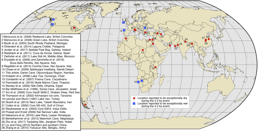 L.B. Railsback, et al., The Timing, Two-Pulsed Nature, and Variable Climatic Expression of the 4.2 ka Event: A Review and New High-Resolution Stalagmite Data from Namibia, Quaternary Science Reviews 186, 78 (2018), https://www.sciencedirect.com/science/article/abs/pii/S027737911731003X?via%3Dihub