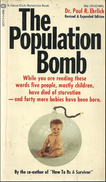 Ehrlich launched immediately into doomsday scenarios by opening his book with the assertion: “The battle to feed humanity is over. In the 1970s and 1980s hundreds of millions of people will starve to death in spite of any crash programs embarked on now.” Ehrlich’s pessimism was driven by sustained high birth rates in underdeveloped countries, despite great reductions in death rates arising from recent improvements in medicine and in agricultural productivity. He predicted that continued overpopulation would contaminate Earth’s environment to the point of collapse. He saw only two possible long-term solutions for a population “bomb,” neither of which could avoid the short-term crises he foresaw: “One is the ‘birth rate’ solution, in which we find ways to lower the birth rate. The other is the ‘death rate’ solution, in which ways to raise the death rate – war, famine, pestilence – find us.”