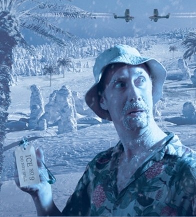 Apparently Hoenikker became fascinated by the concept of ice-nine, after he had been asked by the military to do research that would allow its soldiers to avoid tramping through mud. On missions, soldiers spend considerable time slogging through muddy ponds and swamps, and an army would make much faster progress if those areas were solid. Jonah interrogates Dr. Breed about his hypothetical example of a Marine tramping through a swamp, and throwing a seed crystal of ice-nine into a puddle. “The puddle would freeze,” Jonah was told. “And the pools and the streams in the frozen muck?” “They would freeze.” “What about the rivers and streams in the frozen muck … and the rivers and lakes the streams fed?” “They’d freeze, of course. But there is no such thing as ice-nine.”
