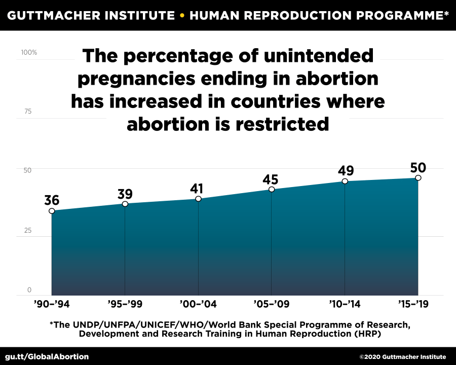 Guttmacher Institute, The Percentage of Unintended Pregnancies Ending in Abortion Has Increased in Countries Where Abortion is Restricted, https://www.guttmacher.org/infographic/2020/percentage-unintended-pregnancies-ending-abortion-has-increased-countries-where