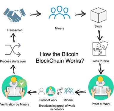 In this post we will argue that cryptocurrency, and specifically the currency Bitcoin, are employing methods that use enormous amounts of energy to run specialized computers. We will demonstrate that the amounts of energy being used are unsustainable, unless significant changes are made in the Bitcoin system. The general details of cryptocurrency were discussed in an earlier post on our blog. In that post, we reviewed the operations of the cryptocurrency system. These operations represent the steps that are taken to produce a system of currency, including all the transactions that would normally be done by banks, in a way that is transparent and involves none of the human interactions that would normally be performed by bank employees. In the cryptocurrency system, groups of transactions are added to a permanent and transparent ledger called the blockchain, which is a running ledger of all the transactions that have occurred. In this process, many cryptocurrency transactions are bundled into a block. Figure II.1 gives a schematic picture of the process by which additional blocks are added to the blockchain. ‘Miners’ assemble a group of transactions into a block, and then attempt to solve a computationally intensive puzzle. When they are successful, their block is loaded onto the end of the blockchain. A ‘proof of work,’ evidence that the miners have successfully solved the puzzle, is included with the block, to show everyone that the puzzle was solved. As we will see, it is this ‘proof of work’ process that makes Bitcoin unsustainable.