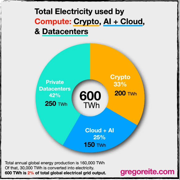 Let’s first put the issue in perspective by comparing to overall energy and electricity usage worldwide. In 2022 the total energy generated globally by all sources was roughly 160,000 terawatt-hours (TWh) or 160 billion megawatt-hours (MWh). To put that number in perspective, the total annual electrical energy consumption by a typical U.S. home is about 10 MWh. Less than 20% of this total was devoted to electricity production, the rest going to oil and gas for heating and gasoline in the residential, industrial, commercial, transportation and government/military sectors, or to waste.