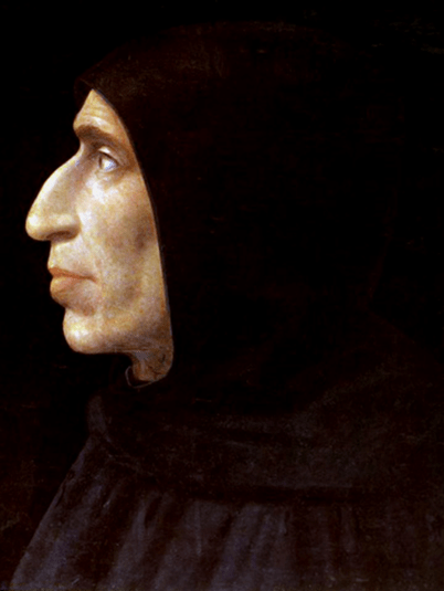 The Comstock Act was hardly the first historical attempt to use book and art bans to impose one view of morality on the masses. At the end of the 15th century, the local government in Florence, Italy came under the dominating influence of the friar Girolamo Savonarola (Fig. III.2). In addition to his prophecies and his charismatic personality, Savonarola was also contemptuous of articles that would tempt people toward sinful acts. He included a large class of books, paintings, sculptures, cosmetics and musical instruments in this class. Under Savonarola’s leadership, Florentines collected large quantities of these objects and burned them in what were called “bonfires of the vanities” in the Piazza della Signoria, a central square in Florence. Many priceless works of art were destroyed in these bonfires. In an ironic twist, in May 1498, after his politically motivated excommunication by Pope Alexander VI, Savonarola and two of his supporting friars were hanged on crosses and their bodies were burned in Florence’s Piazza della Signoria, the same location where the “bonfires of the vanities” had been carried out.