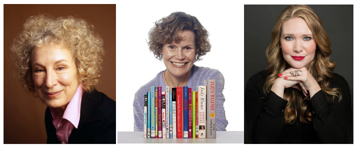 Figure 1: Three of the authors of books that have been banned from all public school libraries in Utah in August 2024, under the criteria established in HB29. From L: Margaret Atwood; Judy Blume; Sarah J. Maas.