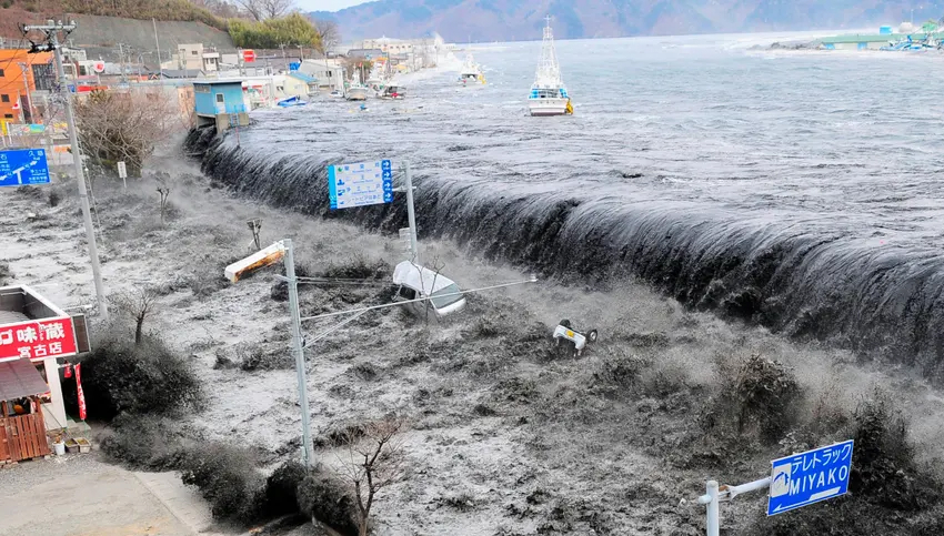 Figure IV.9: A photograph of the 40-m high tsunami as it first made landfall in Miyako, Japan, the location of the highest crest of the tsunami.