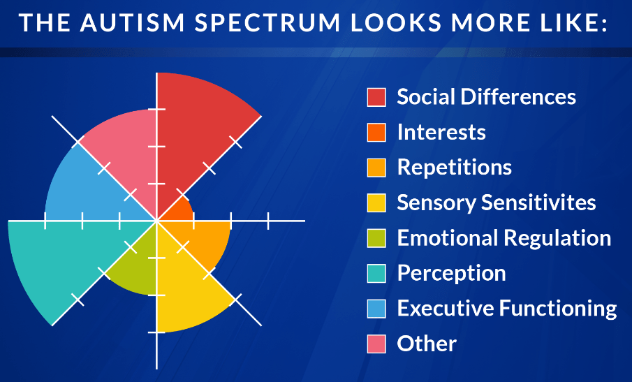 The symptoms of each person diagnosed with autism spectrum disorder are often characterized by an ASD wheel such as the one in Fig. II.4. Each sector of this wheel represents one set of typical ASD symptoms. A sector filled to the outer circumference of the circle represents neurotypical functioning with respect to that characteristic. In contrast, the smaller the radius to which the sector is filled, the more severely atypical the behavior. The filling of sectors will thus differ from individual to individual. In current diagnoses, ASD is meant to encompass such a wide variety of symptoms that it includes the world’s richest man, Elon Musk, the Oscar-winning actor Anthony Hopkins, and young climate activist Greta Thunberg at the high-functioning end.