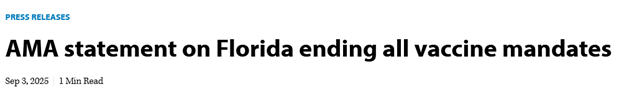 South Florida Hospital News, AMA Statement on Florida Ending All Vaccine Mandates, Sept. 7, 2025, https://southfloridahospitalnews.com/ama-statement-on-florida-ending-all-vaccine-mandates/