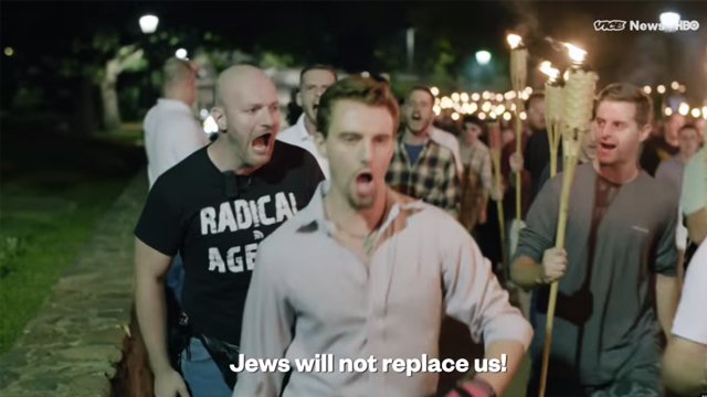 Richard Spencer gained considerable public exposure at the August 2017 Unite the Right rally in Charlottesville, Virginia. Spencer was one of the organizers of this rally, that featured a number of militia groups, white supremacists and anti-Semites. Spencer’s group organized an evening march that featured a parade of white men carrying tiki torches and chanting “Jews will not replace us.” This combines the “white replacement” theory feared by so many right-wing extremists with a virulent anti-Semitism.