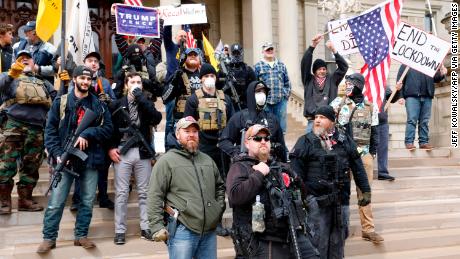 However, the CDC criteria were resisted by President Trump, as he wanted the economy to rebound as rapidly as possible, in order to assist his campaign for re-election. Thus, Trump put considerable pressure on governors of states to re-open rapidly. Along with Trump’s urging of states to cease these public-health restrictions, right-wing groups also attacked the lockdown orders as illegitimate efforts that violated the rights of citizens in those states. “Re-Open” groups were created in several states. The first large organized protest against COVID restrictions took place in Michigan; it was called Operation Gridlock and was organized by the Michigan Freedom Fund and the Michigan Conservative Coalition. Both of these groups were bankrolled by large donors to right-wing activities, such as the Koch Brothers and the DeVos family. The organization also brought in militia groups from around the state.